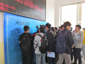 英语四六级考试在即,很多同学均参与到此活动中来,在签名墙上进行公开承诺签名,同学们表示作为西林学子,诚信考试是我们义不容辞的责任,作为党员更要在实际行动中起到先锋模范作用,端正考试态度,严守考纪,诚信考试。