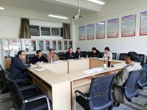 12月17日上午10点10分,公司党委副书记刘沧山莅临公司调研指导党建工作,公司党总支书记谭泽飞、经理兼副书记何超、副经理兼纪委委员陈继飞、党总支委员杨圣文、李加强及各党支部书记参加会议。